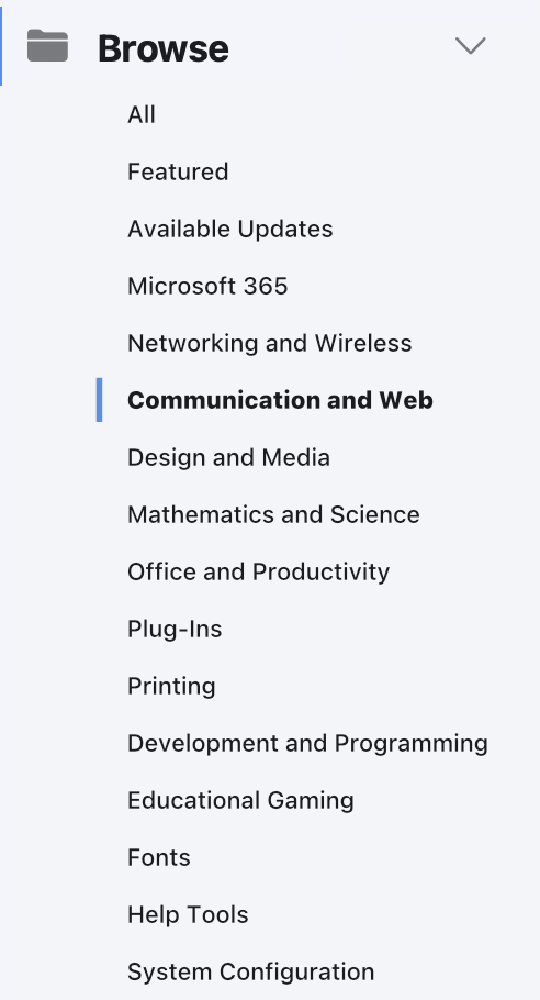 On the left side of Self Service, click Browse to view a list of categories. Explore these categories to see the apps and utilities available for your Mac.
