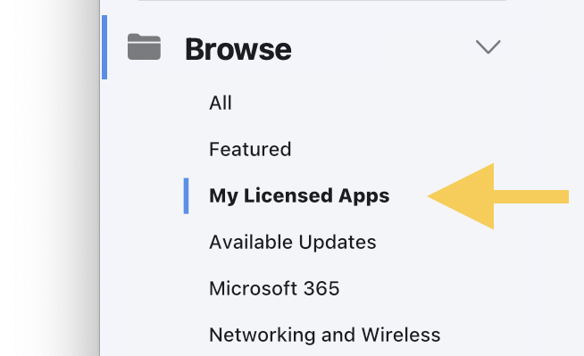 You'll see a new category appear on the left side of Self Service titled My Licensed Apps. Click this category to view apps for which you've purchased a license.