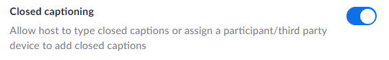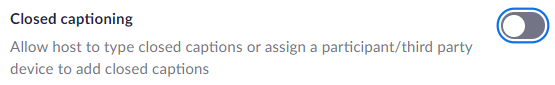 | Zoom Cloud Recording Audio Transcript Closed caption allows the host, another meeting attendee assigned by the host, or an integrated third-party closed captioning service to add closed captioning in a meeting. To enable the closed captioning for your own use: