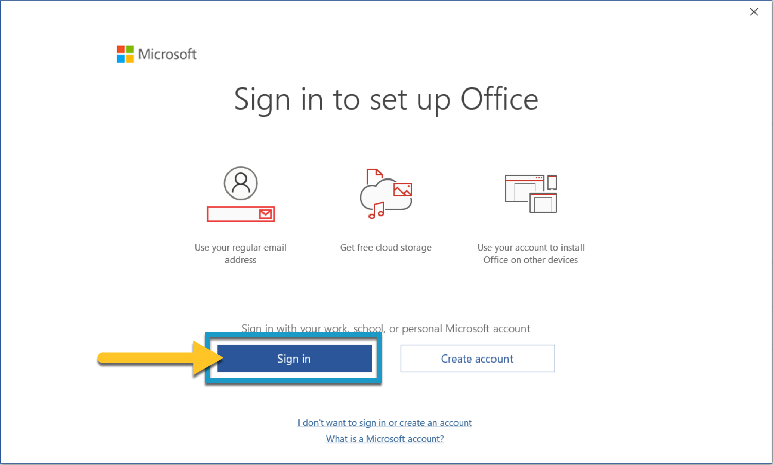 Note: These instructions are the same for any Office app (Word, Excel, PowerPoint) – PowerPoint is used here as an example. - You'll be prompted to "Sign in to set up Office." Click Sign in.