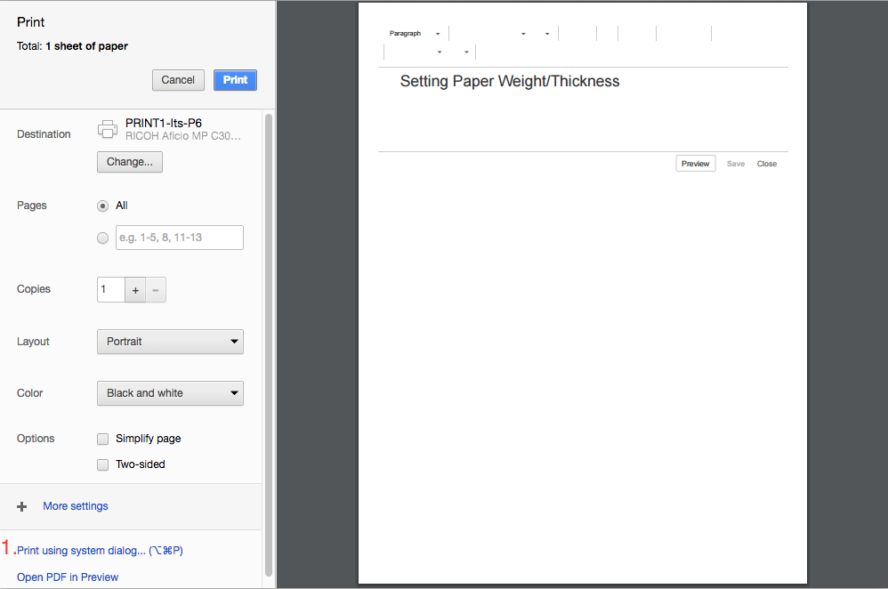 "Print using system dialog"