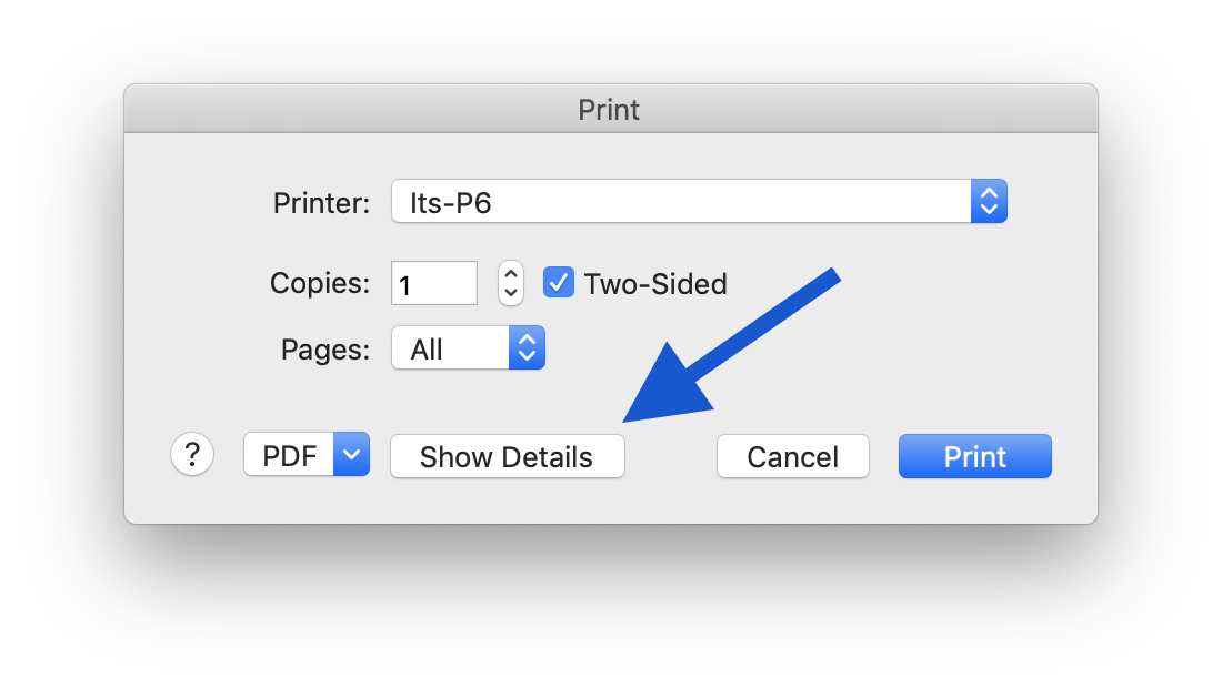 In the System print dialog, ensure you are viewing the "detailed" view