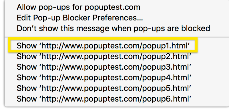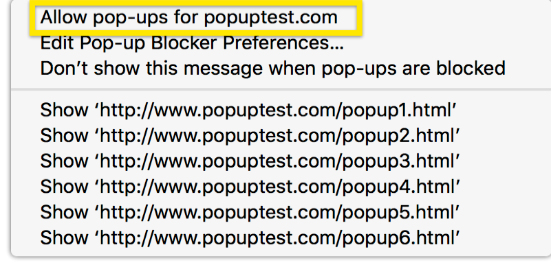 Allow a blocked popup to open