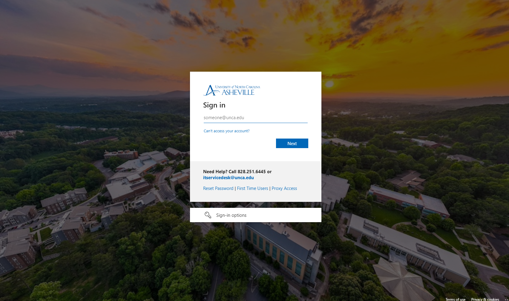 UNC Asheville MFA sign-in screen
