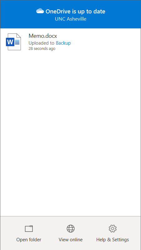 - Use the cloud OneDrive icon in your task tray (click the up arrow near the clock at the bottom of the screen) to monitor the status of your backup to OneDrive.
