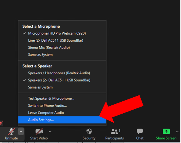 - In zoom, open the audio settings.