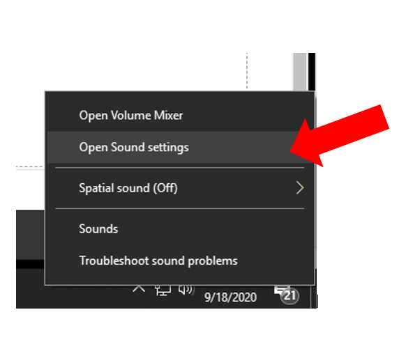 - Right-Click the volume icon at the bottom right of the screen and select Open Sound Settings.
