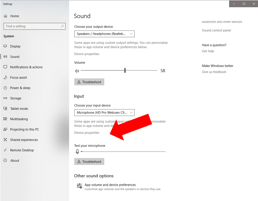 - Below the "Input" section, Chose your microphone and click "Device Properties"