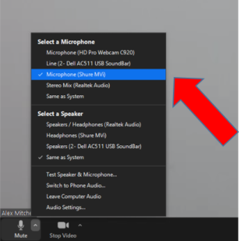 - Make sure you have the correct Microphone Selected in Zoom. Cycle through available microphones in Zoom testing each.