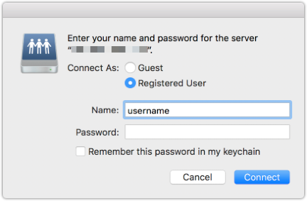 Click Connect.If you've never connected to this File Share before, you may be prompted for confirmation.