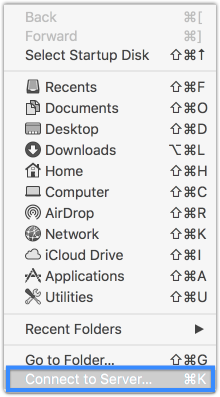 - In the menu bar at the top of your screen, click the Go menu, then select Connect to Server...