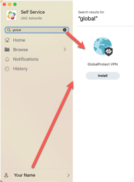 Search for “global” and hit “Install” on the Global Protect app that shows up.