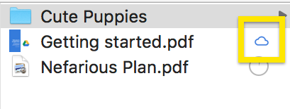 Files with a "cloud" icon are available only while connected to the Internet.