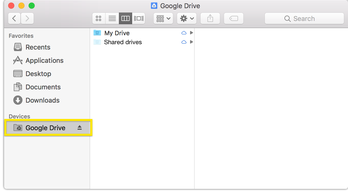Drive File Stream is the recommended Google Drive client for faculty and staff on university computers. It is the business-oriented Drive client which provides full access to all files in your “My Drive” and “Shared Drives” from your Mac.