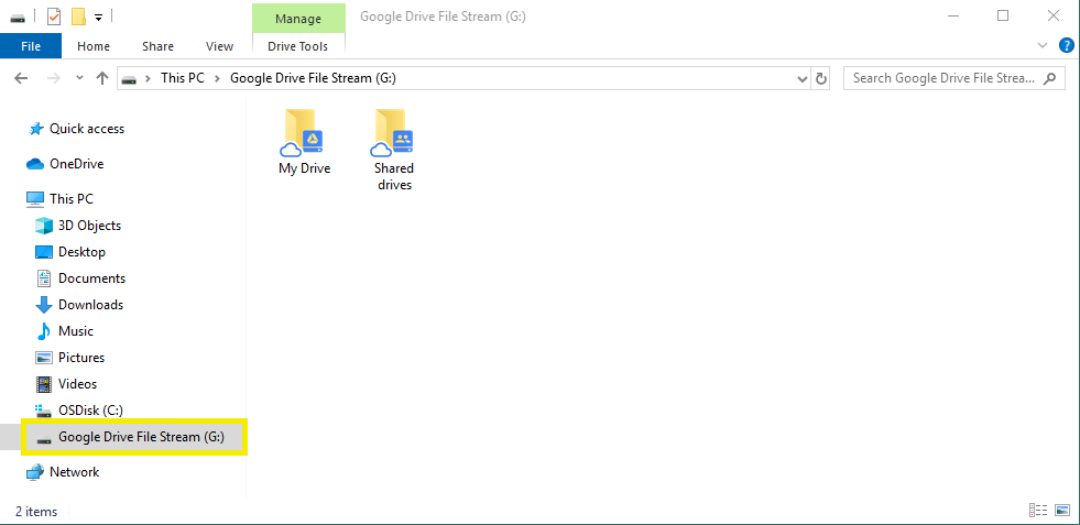 Drive File Stream is the recommended Google Drive client for faculty and staff on university computers. It is the business-oriented Drive client which provides full access to all files in your “My Drive” and “Shared drives” from your Windows computer.
