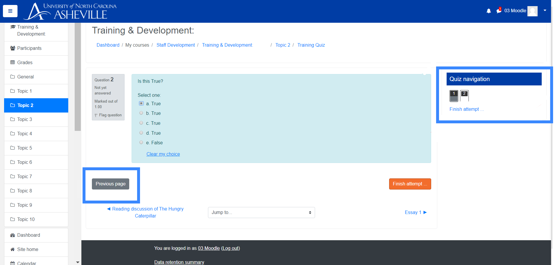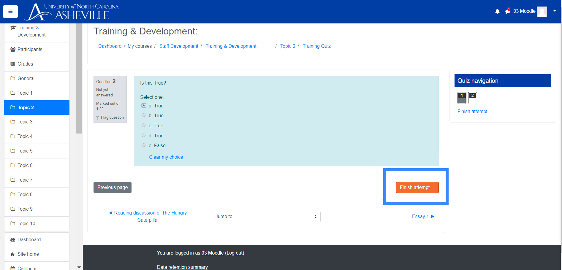- Once you reach the final question and are ready to submit the quiz, click the "Finish Attempt" button on the bottom-right of the screen.