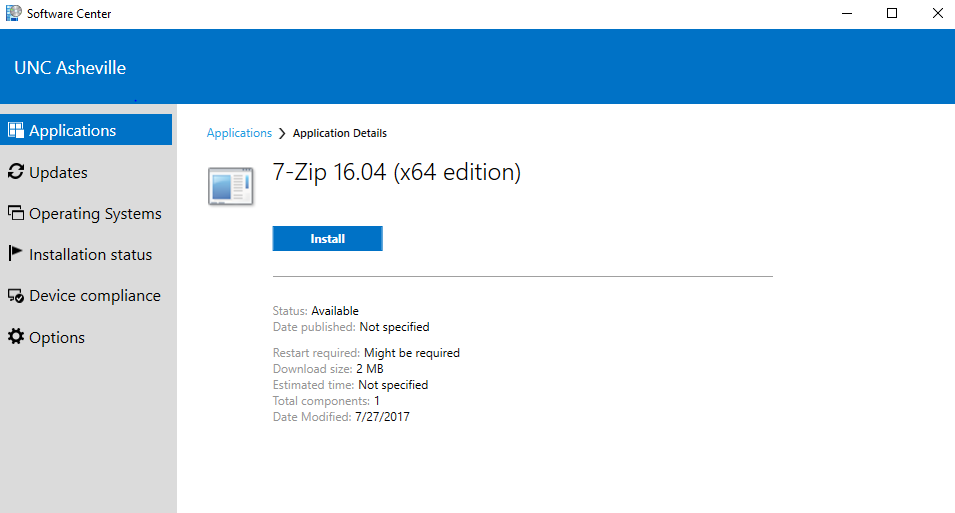 If you experience issues with Software Center, please contact the ITS Service Desk at (828) 251-6445 or ITservicedesk@unca.edu.