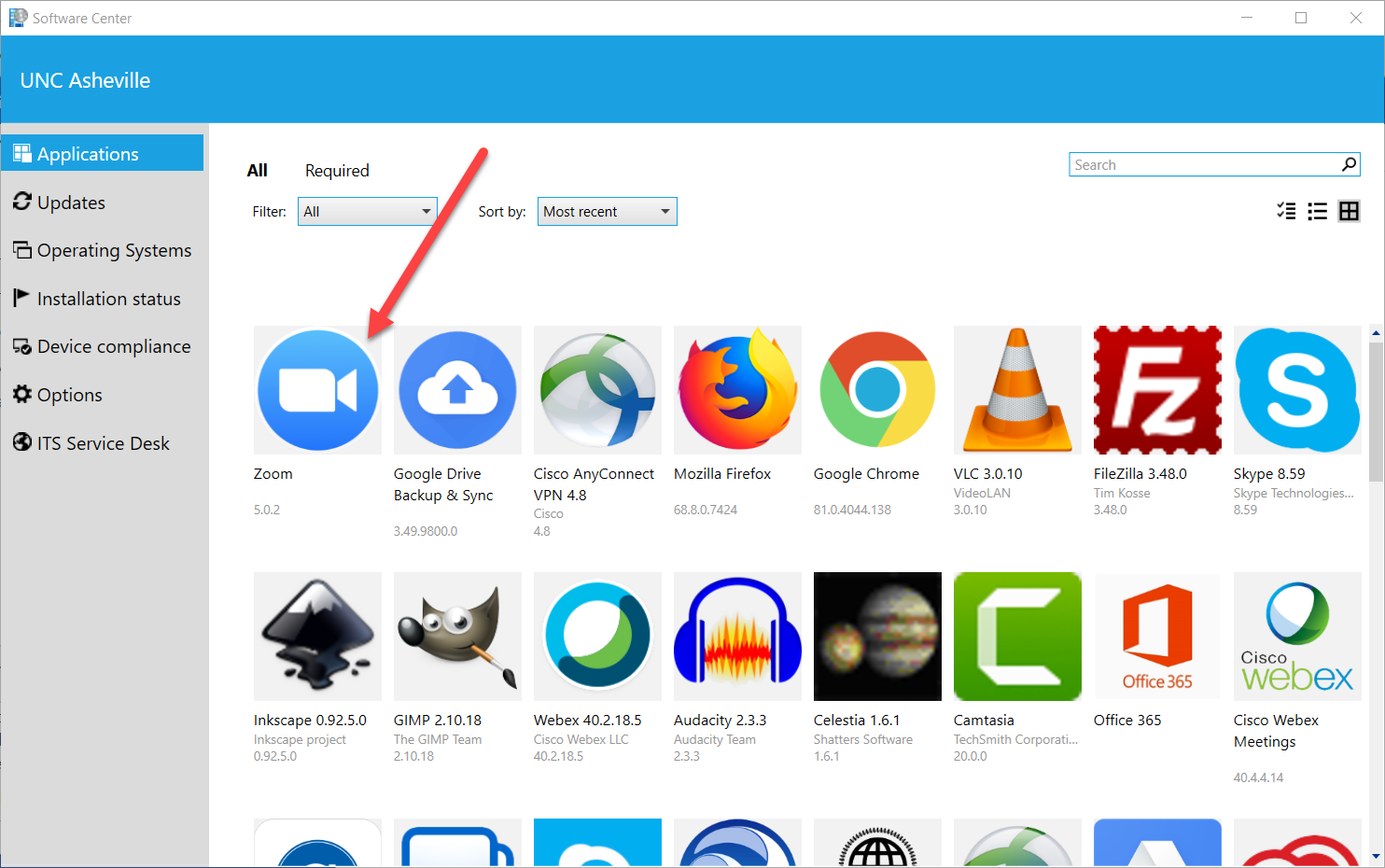 If you do not see Zoom in Software Center, or have any questions, please contact the ITS Service Desk.