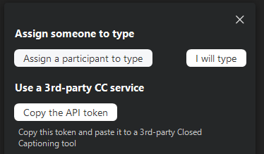 In meetings, the host or another meeting participant assigned by the host can provide manual captioning, or an integrated third-party closed captioning service can provide captioning. This option will allow for non-English languages to be transcribed, or audio from presenters who have a heavy accent or substandard Internet connections that precludes use of Zoom automatic transcription services. These same options are available with webinars, although manual captioning can only be provided by the host or a panelist.