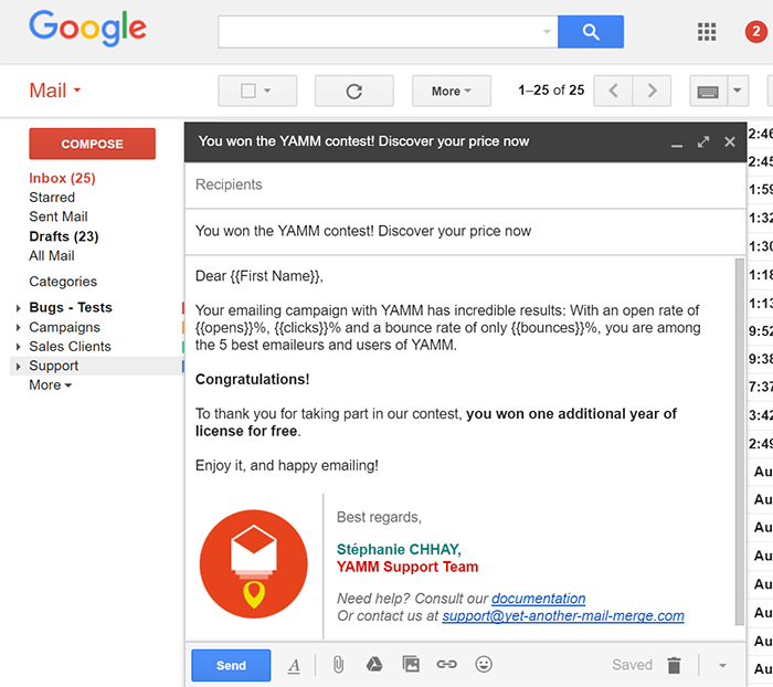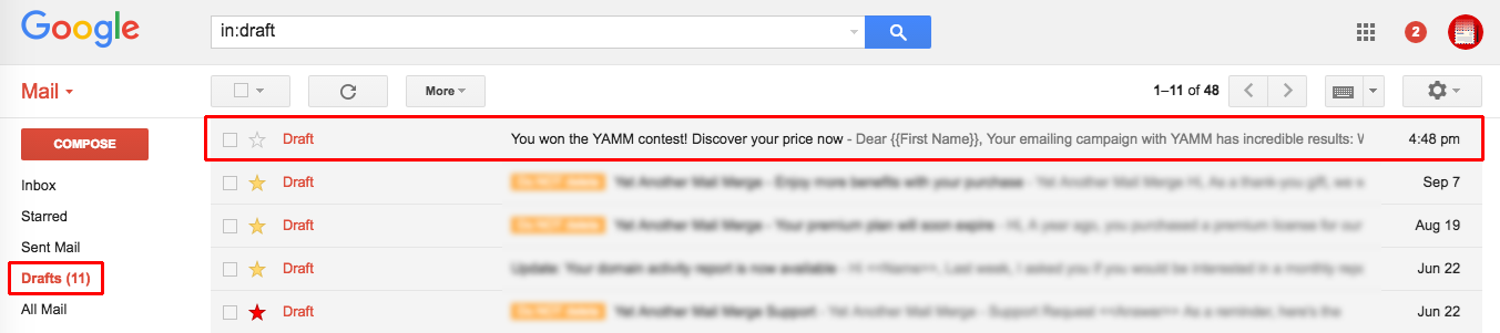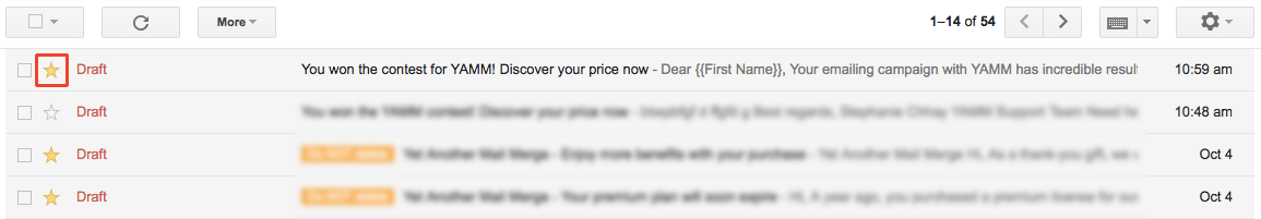 Tip: You can easily retrieve your draft in YAMM by adding a star in Gmail: