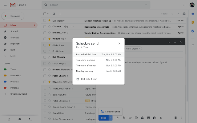 • When drafting an original email or reply in Gmail, you’ll now see an arrow next to the “Send” button.