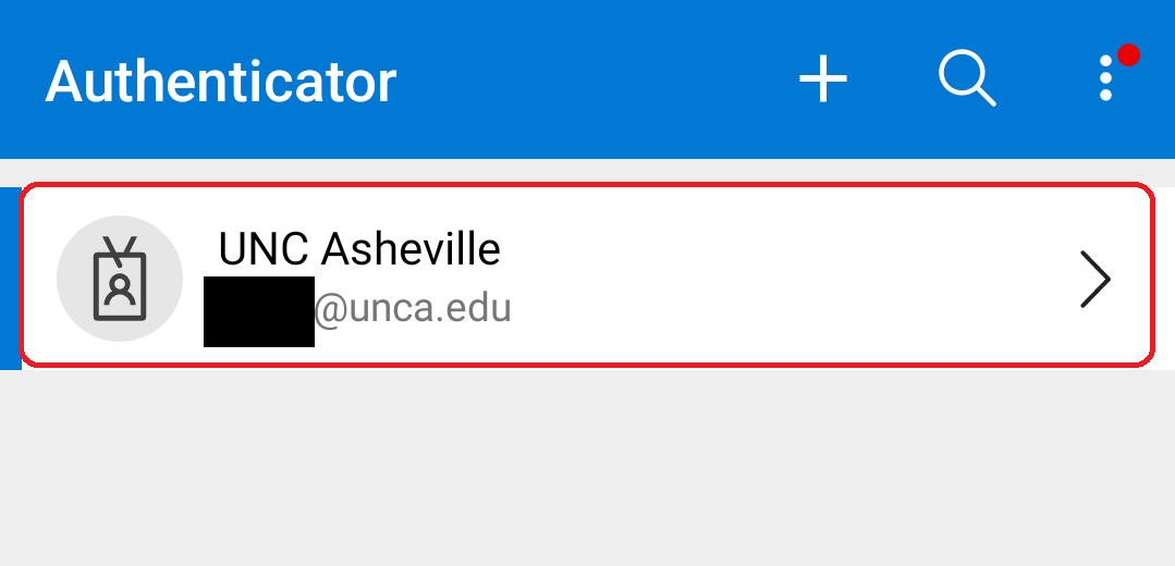 On your phone open the Microsoft Authenticator app and select your UNC Asheville login option.