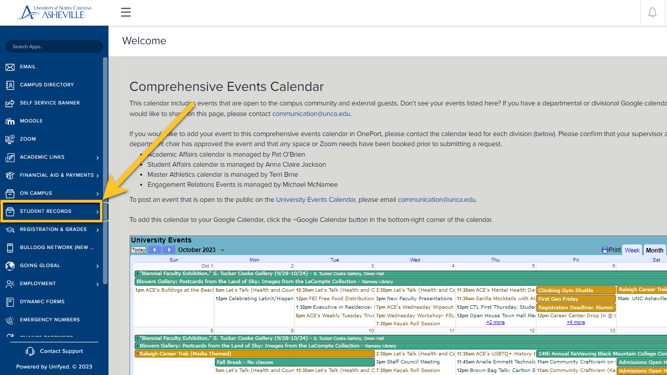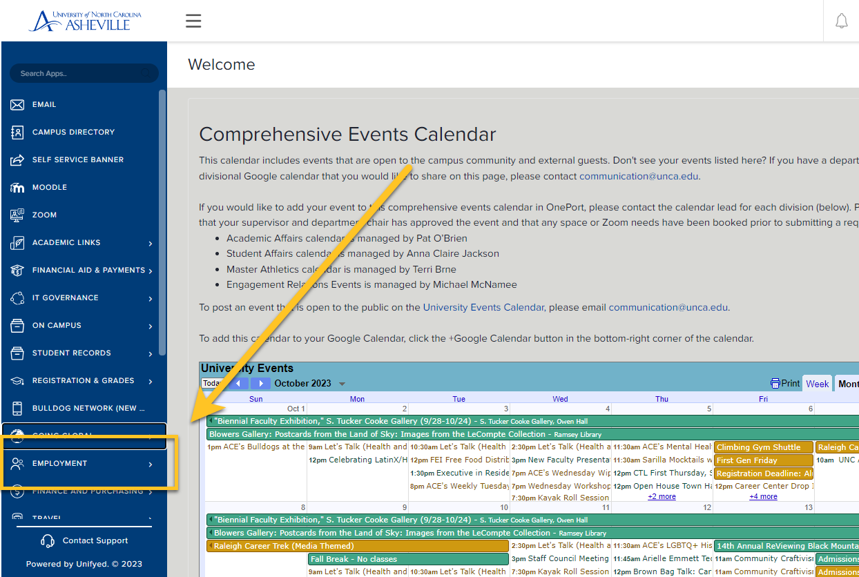 First login to https://oneport.unca.edu using your UNC Asheville account.