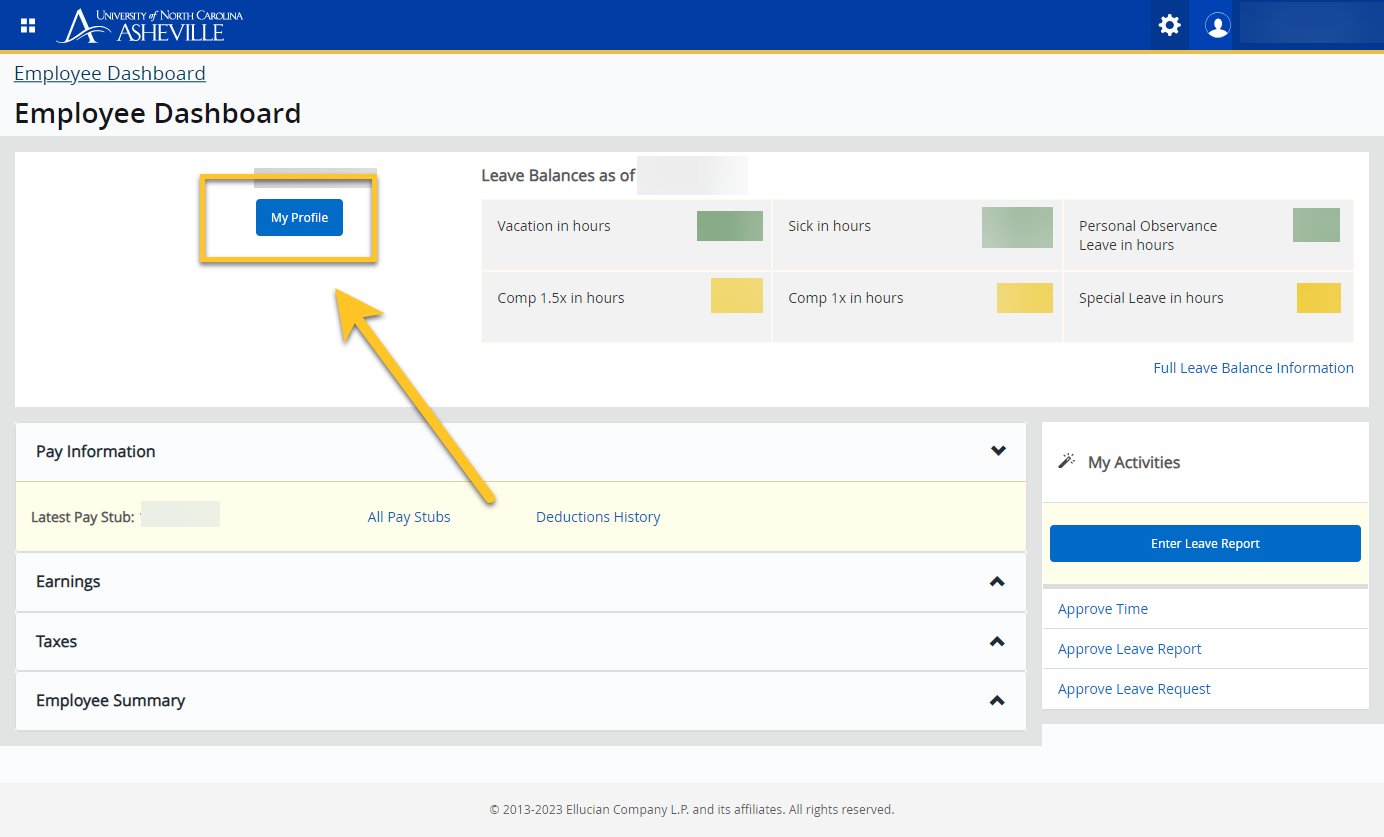 The Employment Dashboard will appear. Click on My Profile