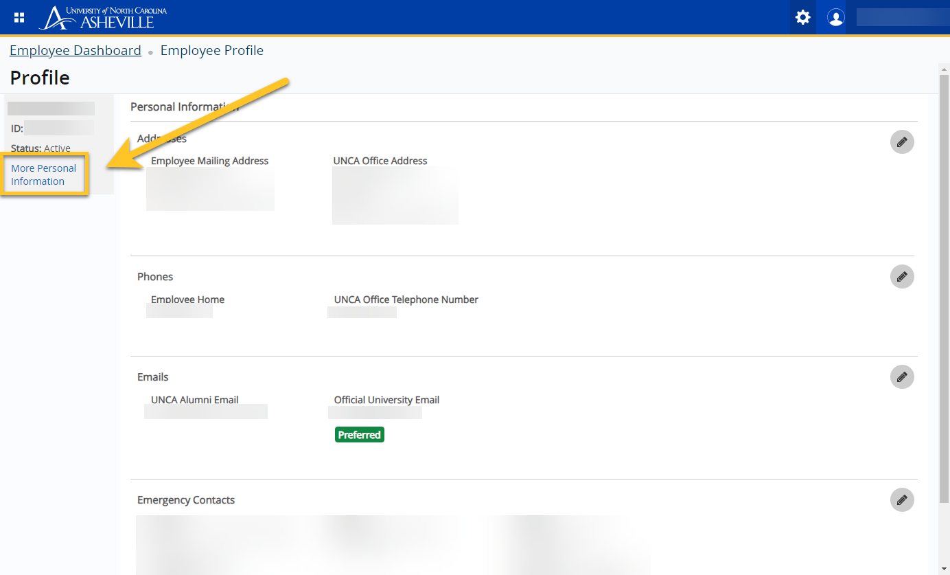 Click on More Personal Information on the left side menu