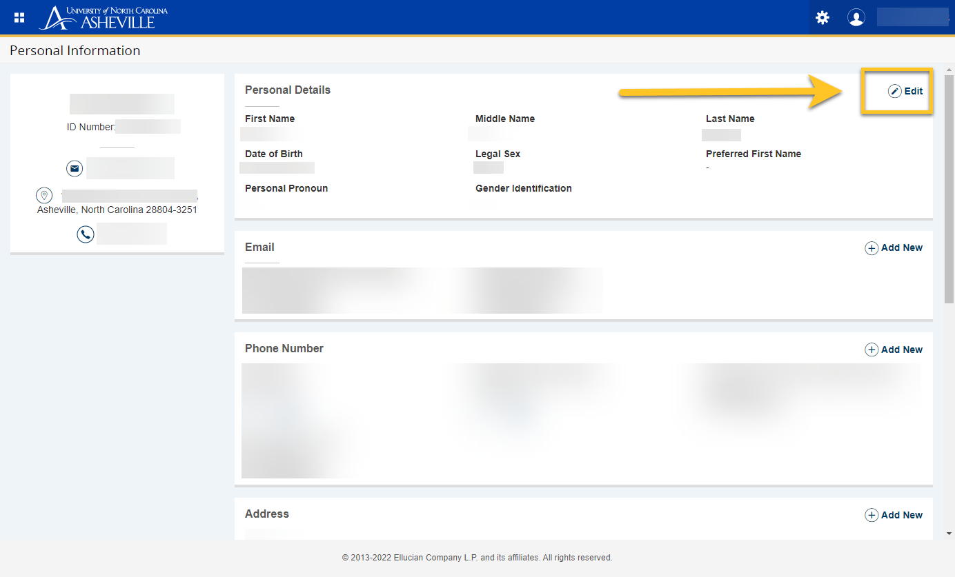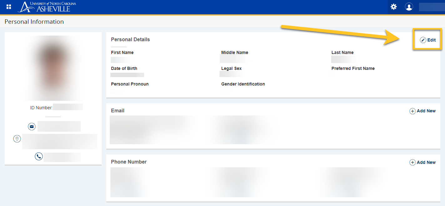 Click on the Edit button in the upper right-hand corner of the Personal Details section of the page