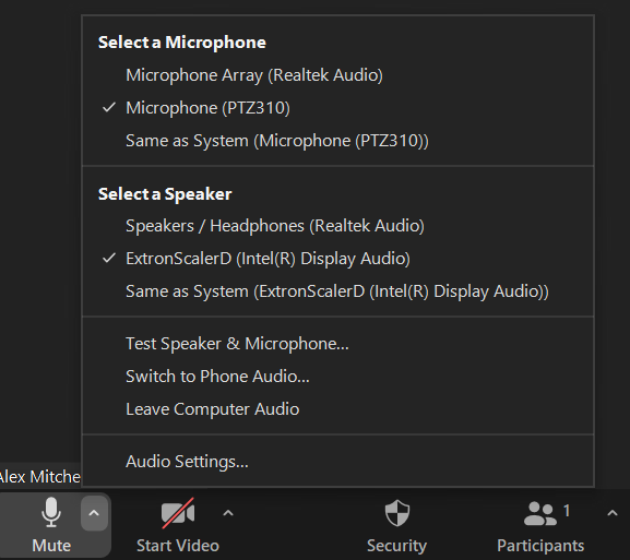 Zoom Speaker and Microphone selection