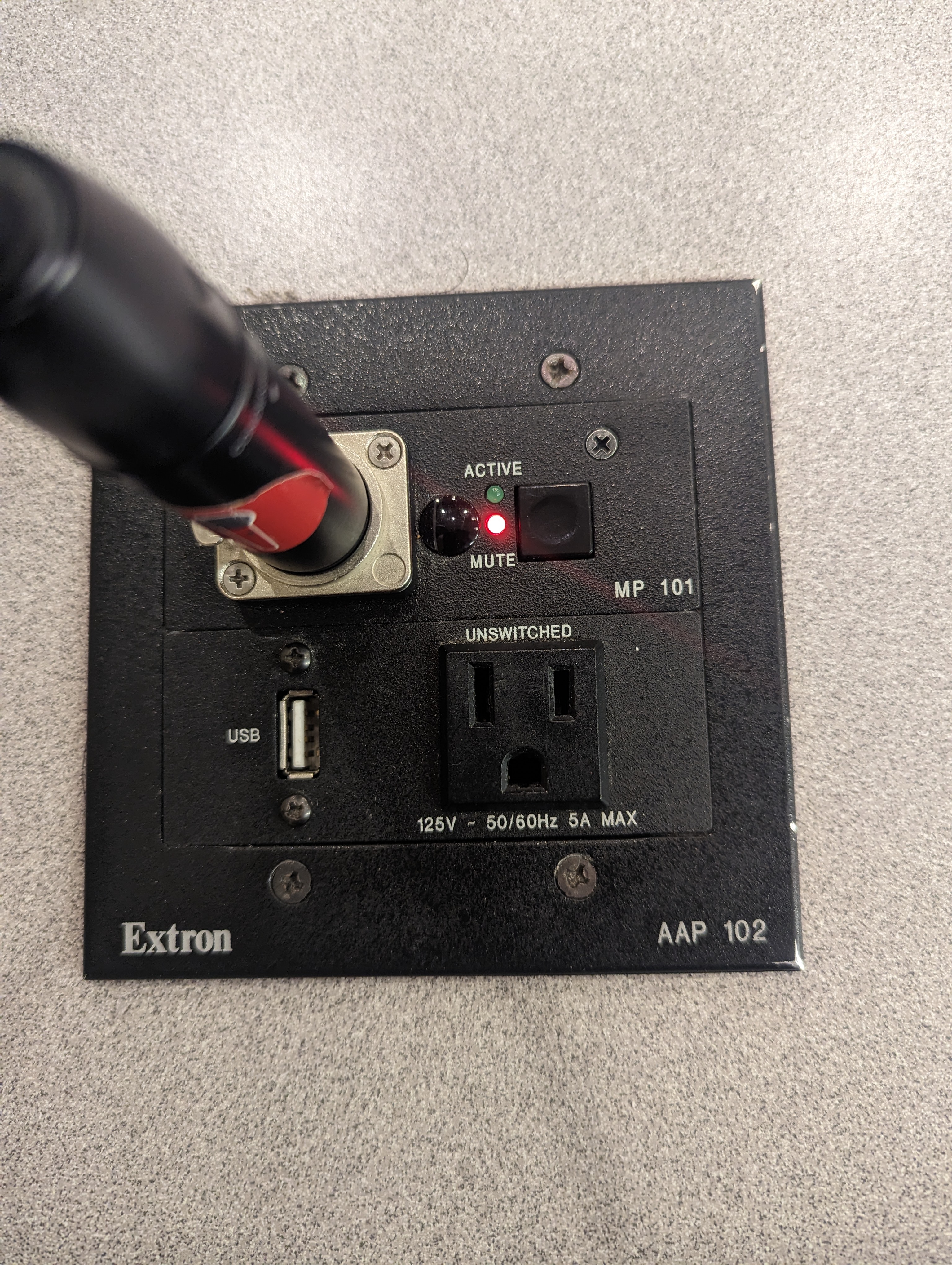 Press the MUTE button at the base of the Gooseneck Mic to enable and disable the mic