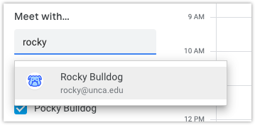 - Start typing someone’s name, then click the person you want to meet with.