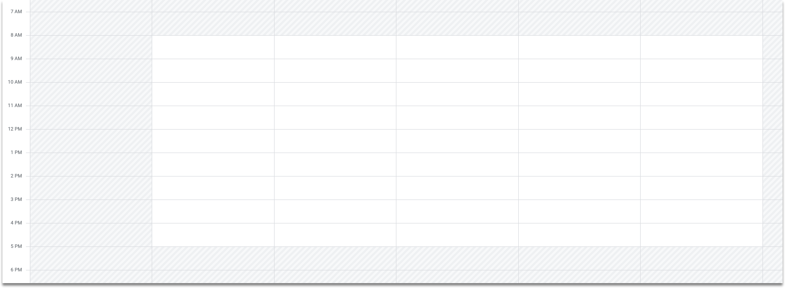 When others attempt to schedule a meeting with you, they'll see your unavailable times noted by crosshatching, and your available times with no background.