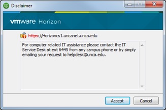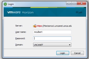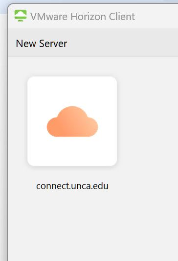 Click on Start > All Programs > VMware > VMware Horizon Client > Add Server Name of Connection Server = connect.uncanet.unca.edu