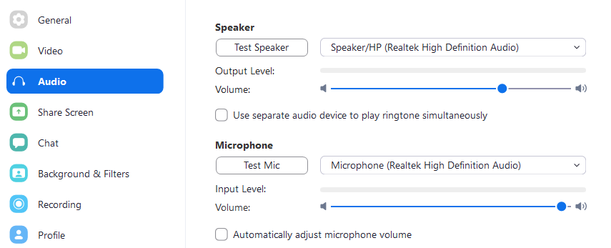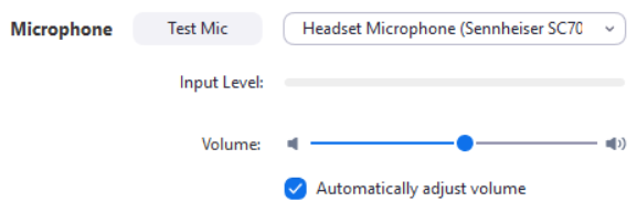 - It is HIGHLY recommended that users disable the Zoom Meeting microphone setting “Automatically adjust volume” in order to maintain a consistent microphone level.