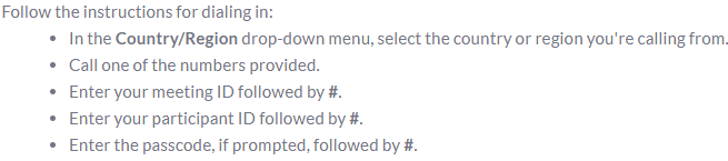 Dialing into a Meeting via telephone