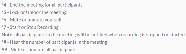 The following phone controls are for the meeting host: