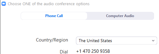 Participants will connect to the meeting via the Zoom Web Client and select Phone Call as the audio conference option.