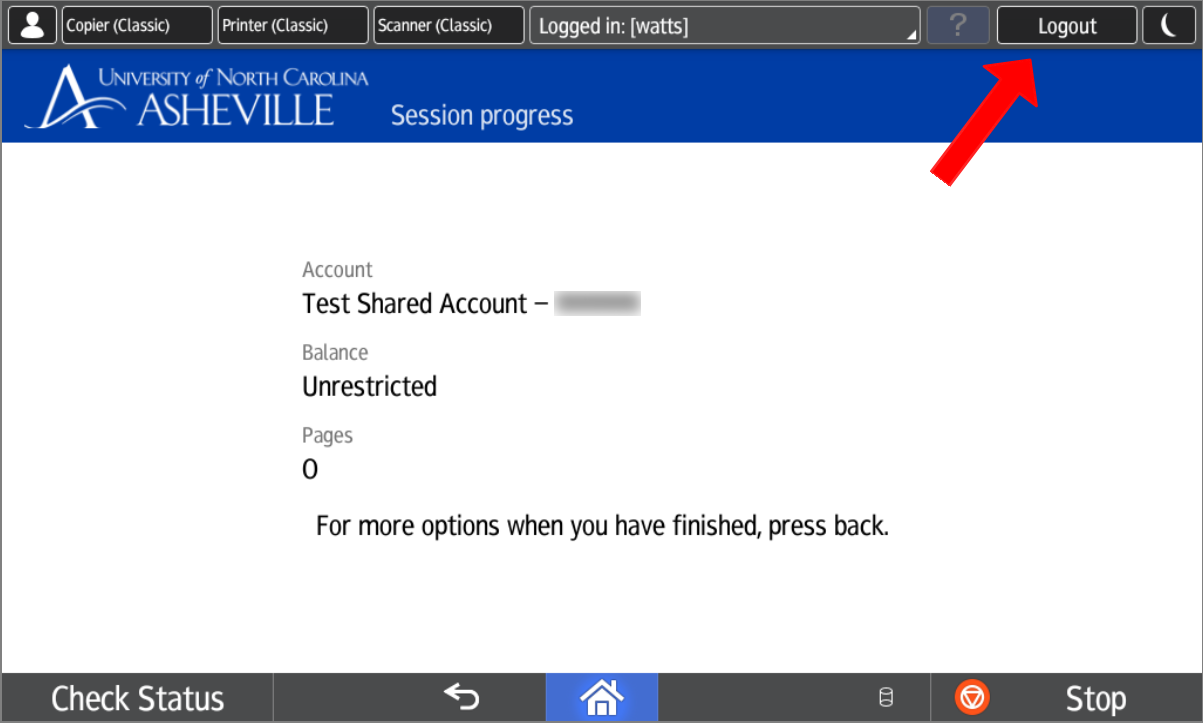Logout of PaperCut on the MDF